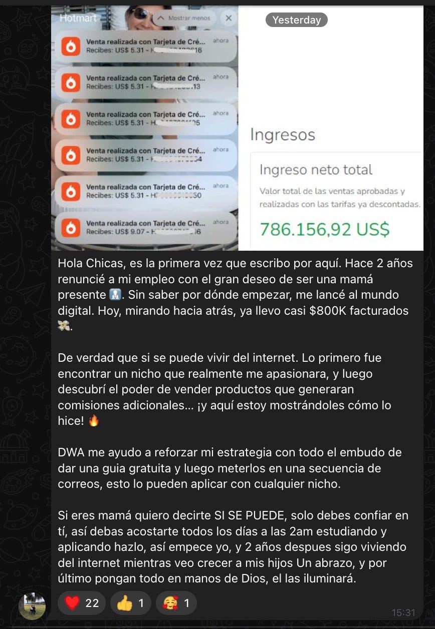 Acceso exclusivo a la comunidad privada DWA donde trendrás apoyo y aprendizaje continuo de los mentores cualificados por la Academia, no solo eso; conectarás con todo los estudiantes que compartiran las estrategias y experiencias de crecimiento y monetización.